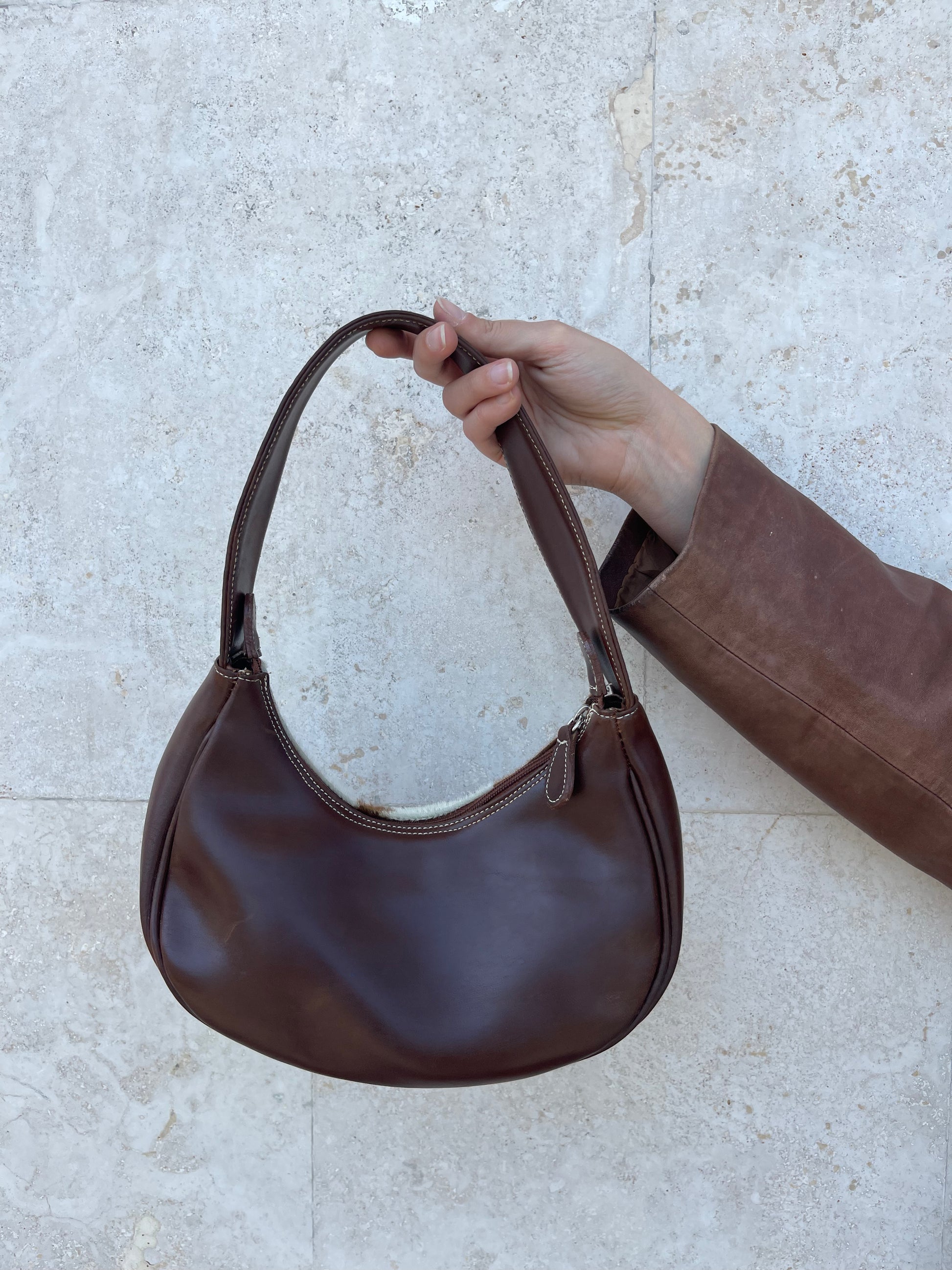 Borsa a spalla in vera pelle marrone Made in Italy con inserto animalier. Manico unico per indossarla spalla, chiusura con cerniera, tasca interna con zip e interno rivestito in tessuto. Dalla forma molto particolare, super cool!