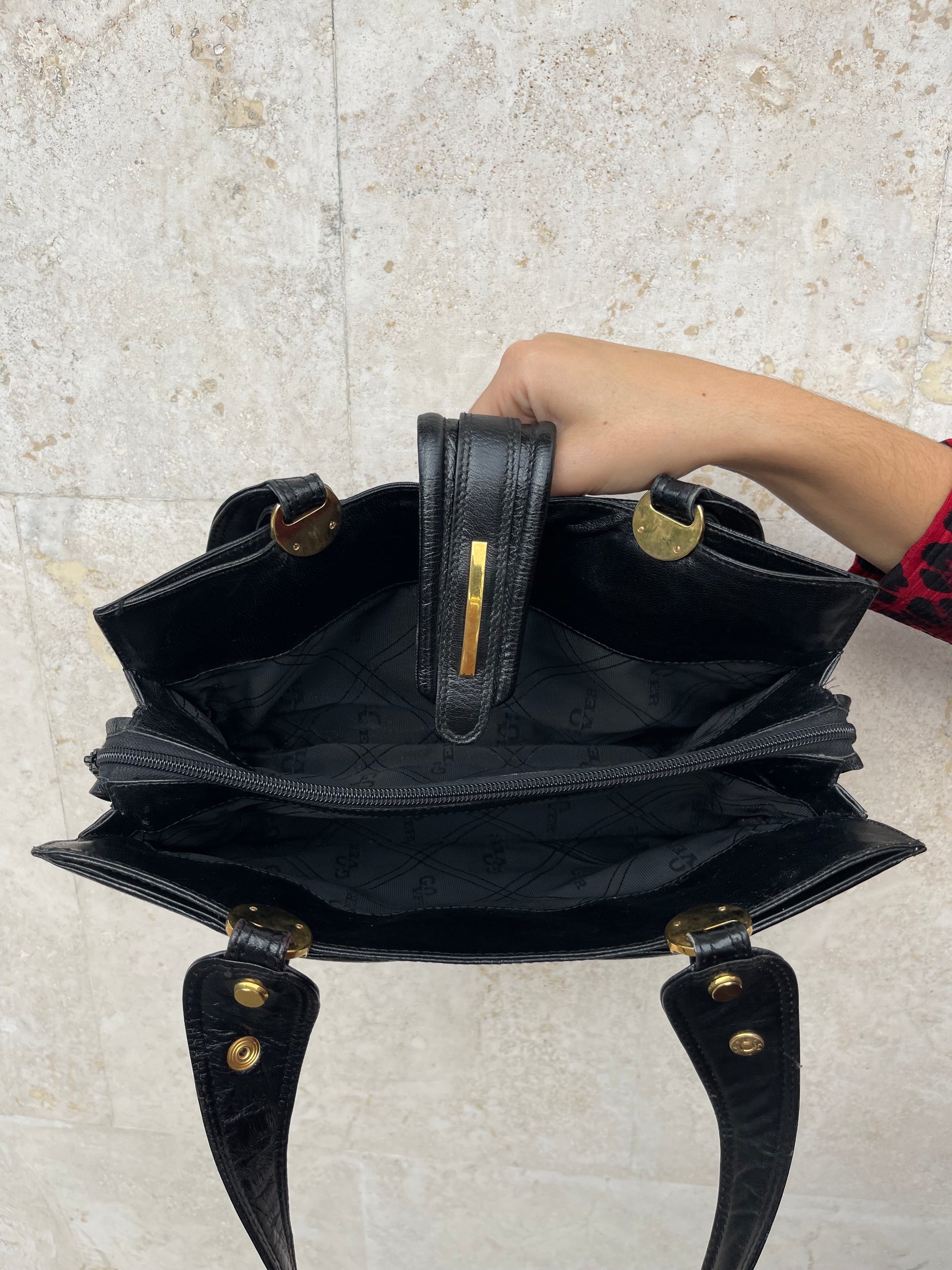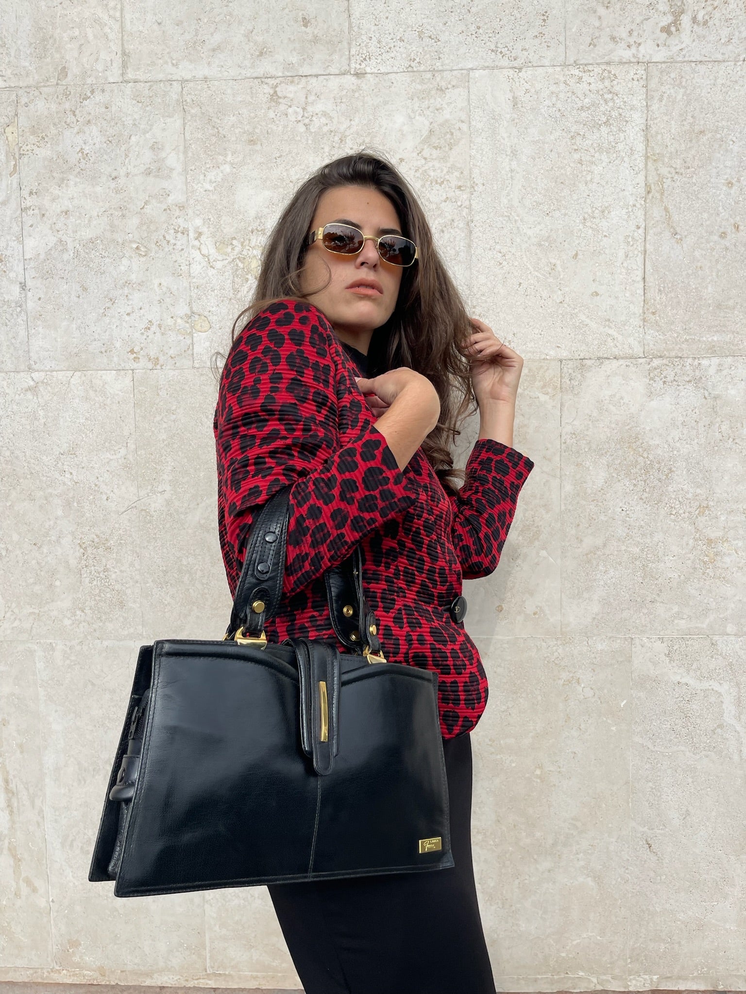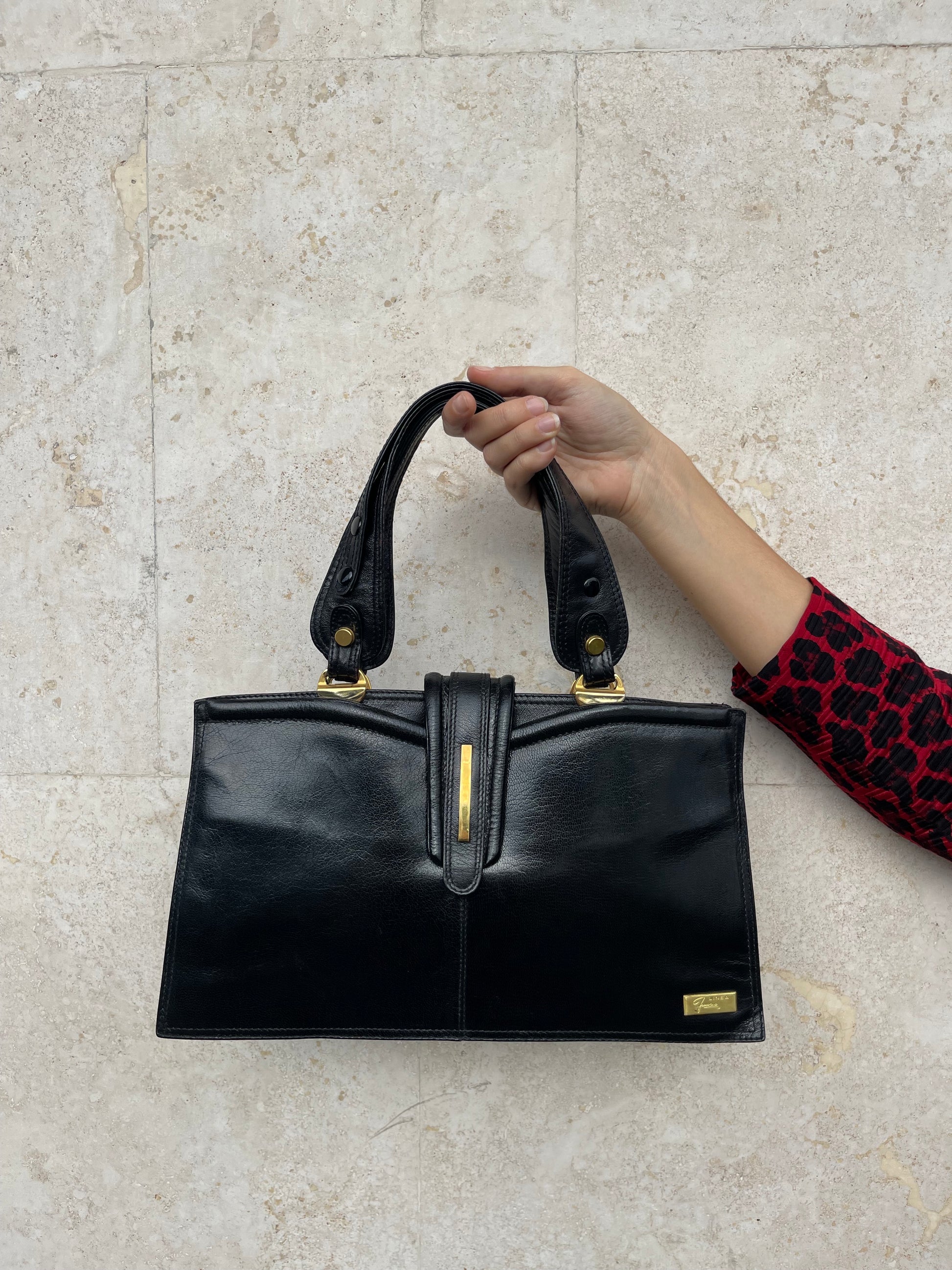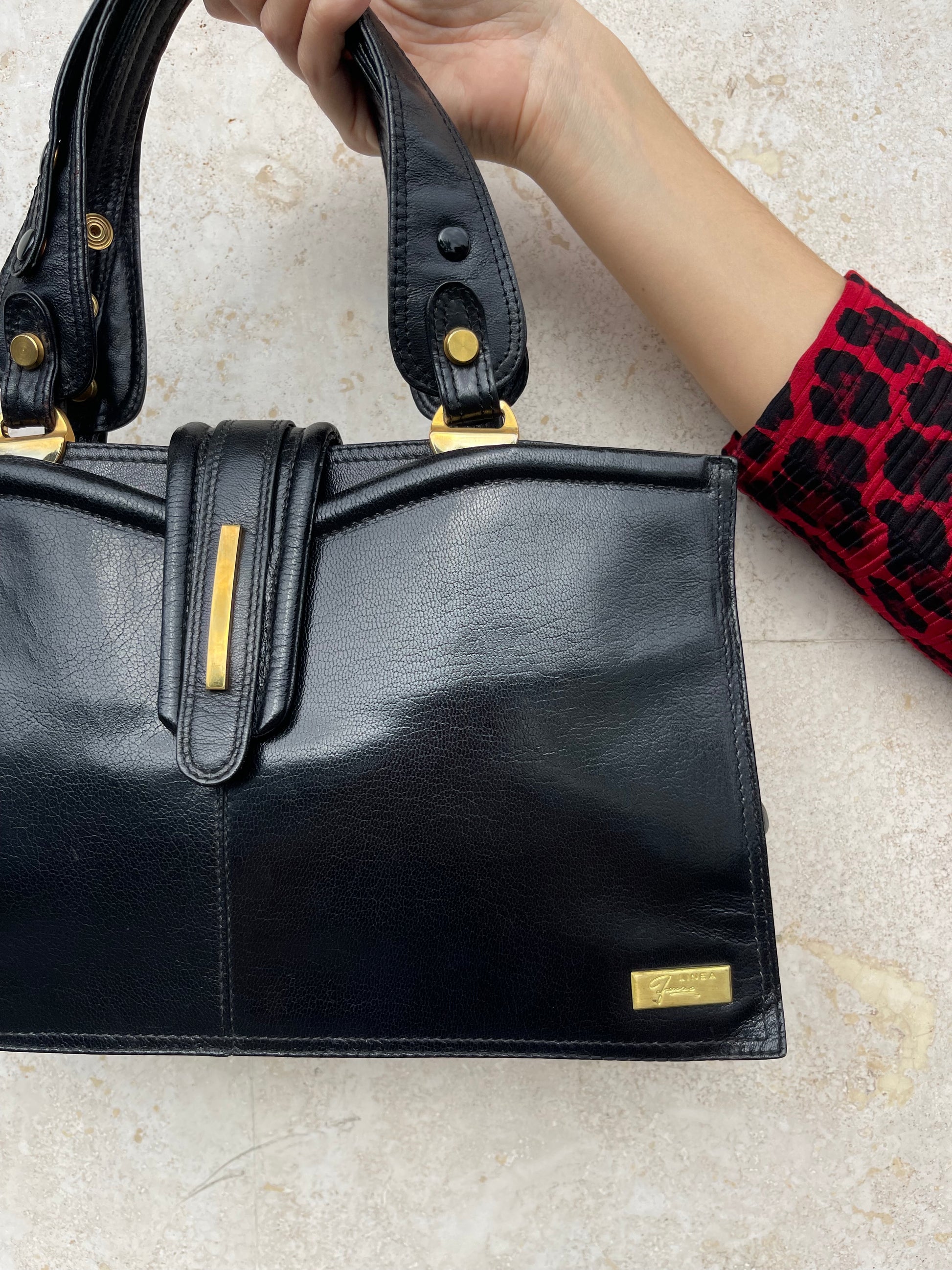 Borsa in vera pelle nera vintage con doppi manici allungabili così da renderla più versatile.