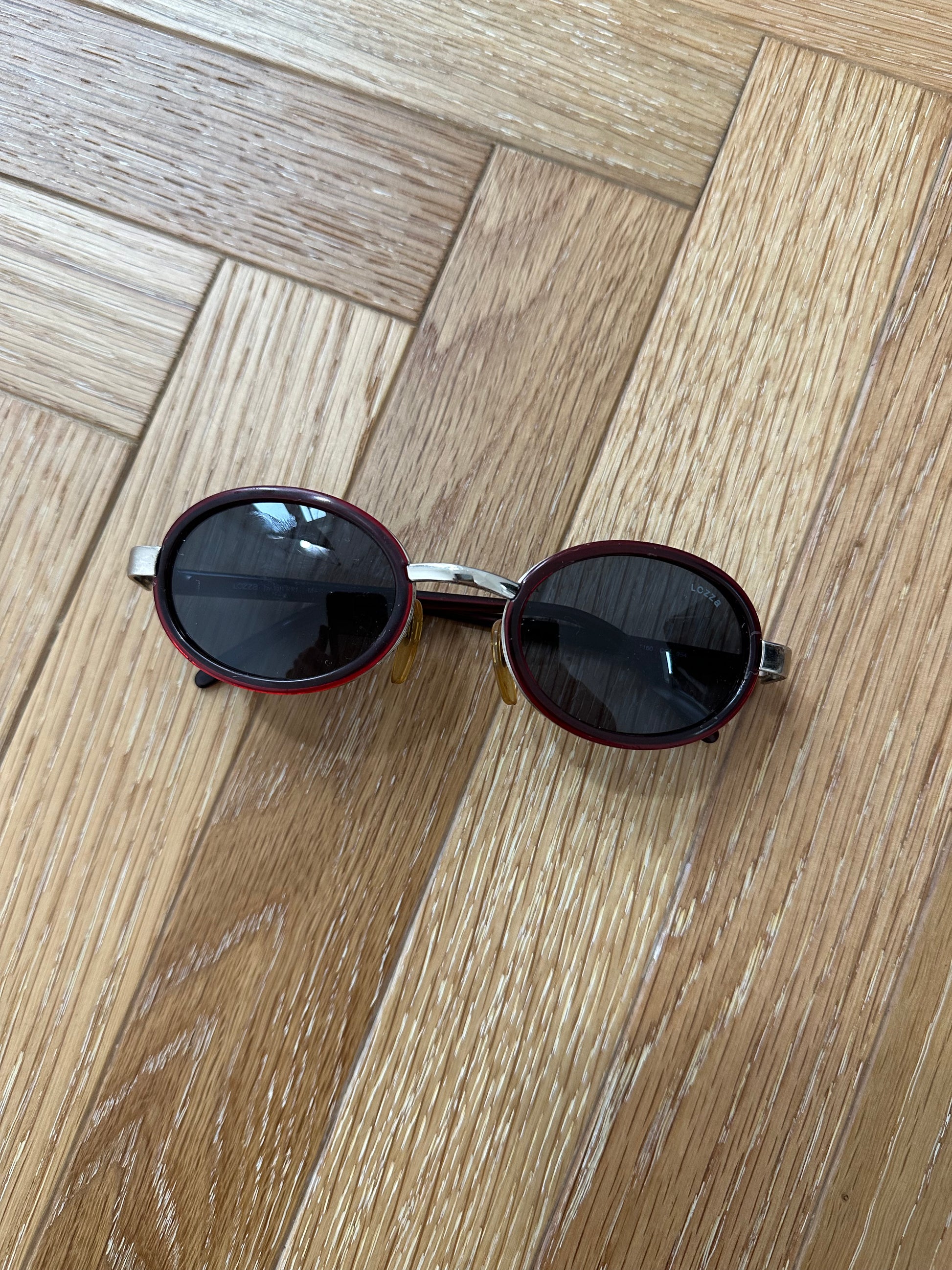 Occhiali da sole vintage tondi con montatura in plastica colore smil borgogna, Riporta ai lati una caratteristica classica degli occhiali stile aviator.